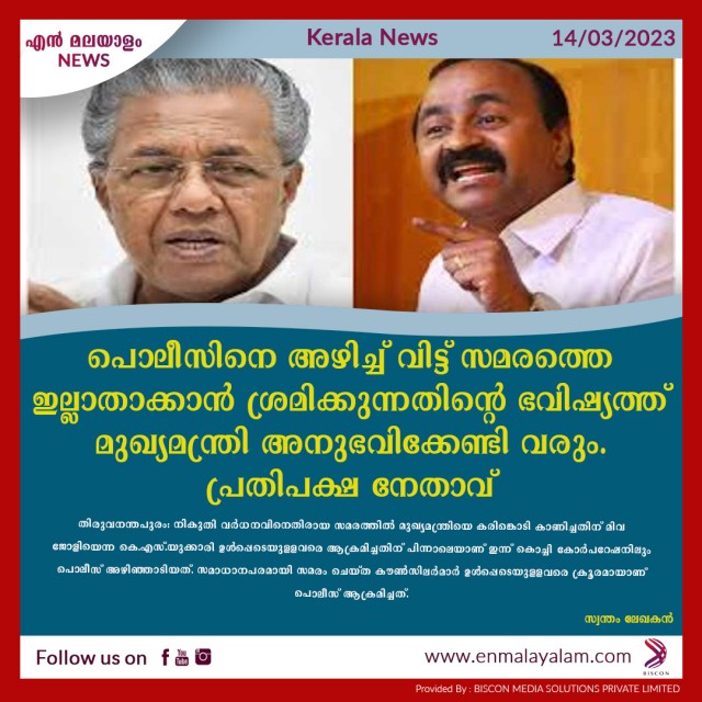 പൊലീസിനെ അഴിച്ച് വിട്ട് സമരത്തെ ഇല്ലാതാക്കാന് ശ്രമിക്കുന്നതിന്റെ ഭവിഷ്യത്ത് മുഖ്യമന്ത്രി അനുഭവിക്കേണ്ടി വരും-പ്രതിപക്ഷ നേതാവ്