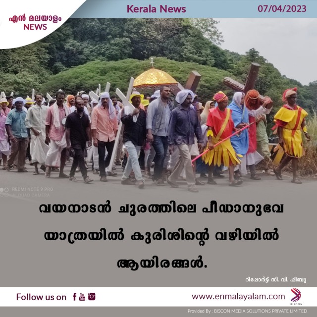 കൽപ്പറ്റ : ക്രിസ്തുവിൻ്റെ പീഢാനുഭവ ചരിത്രവുമായി വയനാട് ചുരത്തില് ദു:ഖവെള്ളി ദിനത്തിലെ കുരിശിന്റെ വഴി നടന്നു. ദു:ഖ വെള്ളിയാഴ്ച നടന്ന കുരിശിൻ്റെ വഴിയില് ആയിരകണക്കിന് വിശ്വാസികള് പങ്കെടുത്തു. താമരശ്ശേരി അടിവാരം ഗദ്സമന് പാര്ക്കില് നിന്നാരംഭിച്ച കുരിശിന്റെ വഴി ഉച്ചയോടെ വയനാട് ലക്കിടി മൗണ്ട് സീനായില് സമാപിച്ചു. ഏറ്റവും കൂടുതൽ വിശ്വാസികൾ പങ്കെടുത്ത് ഏറ്റവും കൂടുതൽ ദൂരം പാപപരിഹാര യാത്ര നടത്തുന്നുവെന്നതിൻ്റെ പേരിൽ 2006 -ൽ ഗിന്നസ് റെക്കോർഡ് നേടിയ വയനാടൻ ചുരത്തിലെ കുരിശിൻ്റെ വഴി 32 - വർഷമാണിത്. ഈസ്റ്ററിന് മുമ്പുള്ള 50 നോമ്പ് തുടങ്ങിയത് മുതൽ എല്ലാ വെള്ളിയാഴ്ചയും കോഴിക്കോട് ജില്ലയിലെ അടിവാരത്ത് നിന്നും വയനാട്ടിലെ ലക്കിടി വരെ കുരിശിൻ്റെ വഴി നടത്താറുണ്ട്. ദു:ഖവെള്ളിയാഴ്ചയാണ് ഏറ്റവും കൂടുതൽ വിശ്വാസികൾ പങ്കെടുക്കുന്നത്. രാവിലെ ഫാ: ജെയിംസ് മേക്കര മിശിഹാ ചരിത്ര സന്ദേശവും മാർ ജോൺ പനന്തോട്ടം ദു:ഖവെള്ളി സന്ദേശവും നൽകിയാണ് അടിവാരത്ത് നിന്ന് കുരിശിൻ്റെ വഴി ആരംഭിച്ചത്. കാൽവരി യാത്രയെ അനുസ്മരിച്ച് കുരിശ് വഹിച്ച യേശു ക്രിസ്തുവും അമ്മ മറിയവും ഭക്ത സ്ത്രീകളും പടയാളികളും വേഷഭൂഷാദികളണിഞ്ഞ് പരിഹാര യാത്രക്ക് മുമ്പിൽ നീങ്ങി. വിവിധ സംഘടനകളുടെ നേതൃത്വത്തിൽ ചുരത്തിലുടനീളം സംഭാരം അടക്കം പാനീയങ്ങൾ നൽകി. യേശുവിൻ്റെ ഗാഗുൽത്തായിലേക്കുള്ള പീഢാനുഭവ യാത്രയിലെ സ്ഥലങ്ങളെ ഓർമ്മപ്പെടുത്തി 14 സ്ഥലങ്ങളിലും താൽക്കാലിക കുരിശ് സ്ഥാപിച്ച് വിശ്വാസികൾ അവിടെ പ്രാർത്ഥന നടത്തി. ഉച്ചക്ക് രണ്ട് മണിയോടെ ലക്കിടി മൗണ്ട് സീനായിൽ സമാപിച്ചു. രാവിലെ മുതൽ ഇവിടെ നേർച്ച ഭക്ഷണം വിതരണം ചെയ്യുന്നുണ്ടായിരുന്നു . വലിയ സംഘമായുള്ള കുരിശിൻ്റെ വഴി കൂടാതെ പുലർച്ചെ നാല് മണി മുതൽ വൈകുന്നേരം വരെ യു. ചെറുസംഘങ്ങളായും ആളുകൾ ചുരത്തിലൂടെ പരിഹാര പ്രദക്ഷിണം നടത്തുന്നുണ്ടായിരുന്നു.