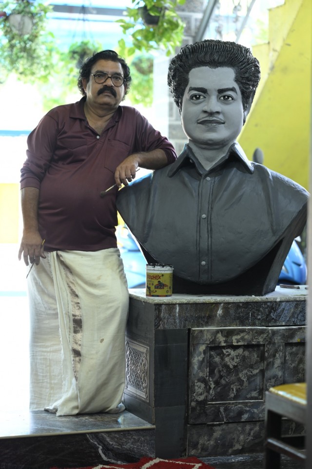 ശിൽപ്പി. ഒരു മാസം കൊണ്ട് സിമ്മൻ്റിലാണ് പ്രതിമയുടെ നിർമ്മാണം. രണ്ടര ലക്ഷം രൂപയാണ് നിർമ്മാണ ചിലവും ഇന്ന് രാവിലെ 10 മണിക്ക് വി. ശശി എം.എൽ.എ പ്രതിമ അനാഛാദനം ചെയ്യും.