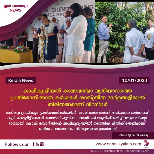 കാപ്പികൃഷിയൽ കാലാവസ്ഥാ വ്യതിയാനത്തെ പ്രതിരോധിക്കാൻ കർഷകർ ശാസ്ത്രീയ മാർഗ്ഗങ്ങളിലേക്ക് തിരിയണമെന്ന് വിദഗ്ധർ