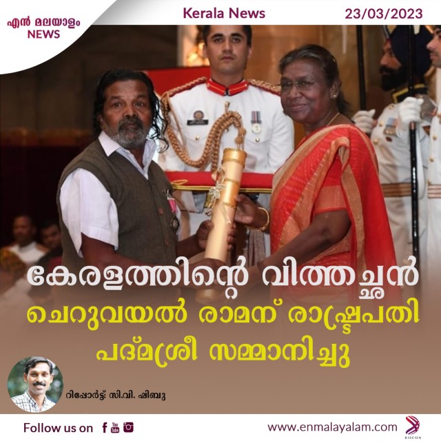 കേരളത്തിൻ്റെ വിത്തച്ഛൻ ചെറുവയൽ രാമന് രാഷ്ട്രപതി പദ്മശ്രീ സമ്മാനിച്ചു
