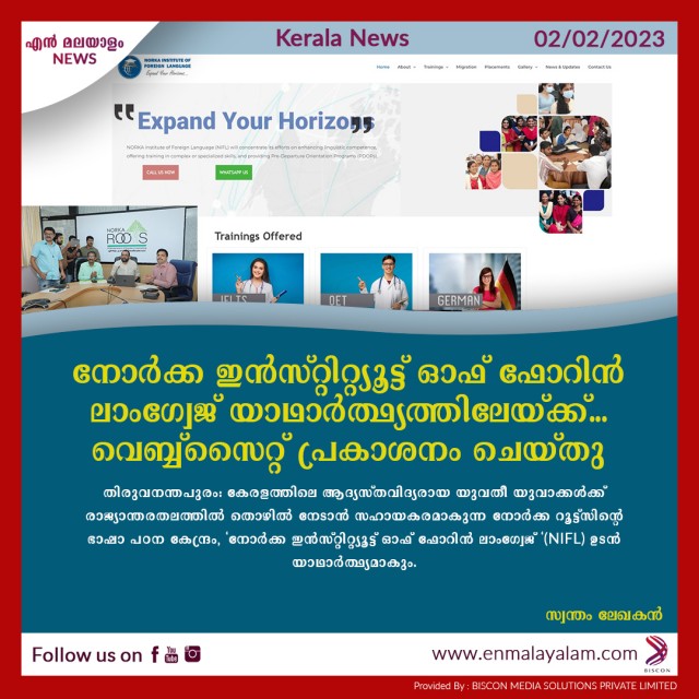 നോര്ക്ക ഇന്സ്റ്റിറ്റ്യൂട്ട് ഓഫ് ഫോറിന് ലാംഗ്വേജ് യാഥാർത്ഥ്യത്തിലേയ്ക്ക് ... വെബ്ബ്സൈറ്റ് പ്രകാശനം ചെയ്തു