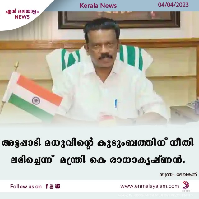 അട്ടപ്പാടി മധുവിന്റെ കുടുംബത്തിന് നീതി ലഭിച്ചെന്ന് മന്ത്രി കെ രാധാകൃഷ്ണൻ.