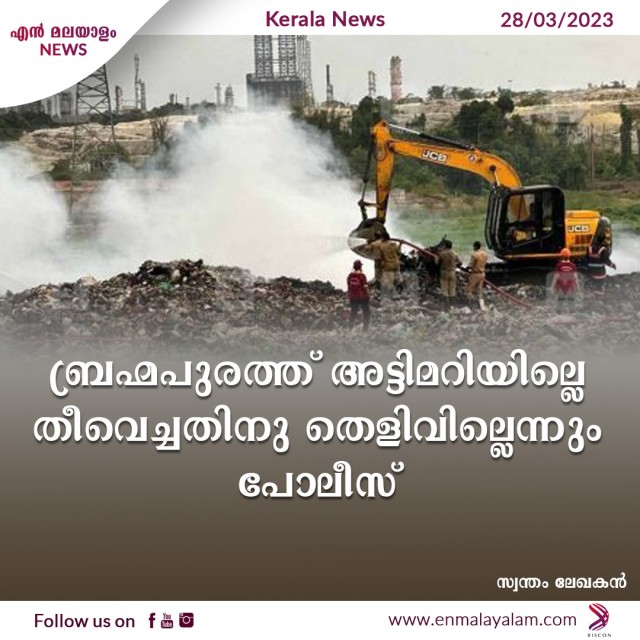 ‘ബ്രഹ്മപുരത്ത് അട്ടിമറിയില്ലെ തീവച്ചതിനു തെളിവില്ലെന്നും പോലീസ്