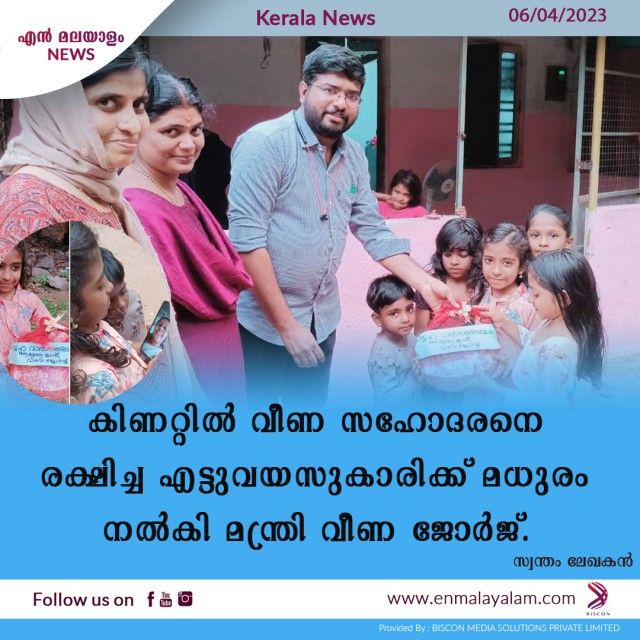 കിണറ്റില് വീണ സഹോദരനെ രക്ഷിച്ച എട്ടുവയസുകാരിക്ക് മധുരം നല്കി മന്ത്രി . വീണ ജോർജ്.