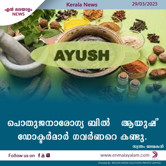 പൊതുജനാരോഗ്യ ബിൽ - ആയുഷ് ഡോക്ടർമാർ ഗവർണറെ കണ്ടു.