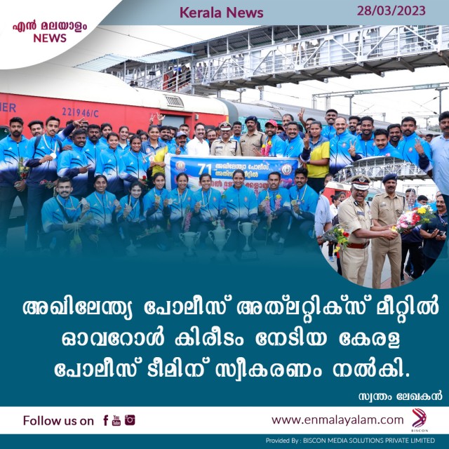 അഖിലേന്ത്യ പോലീസ് അത്ലറ്റിക്സ് മീറ്റില് ഓവറോള് കിരീടം നേടിയ കേരള പോലീസ് ടീമിന് സ്വീകരണം നല്കി.