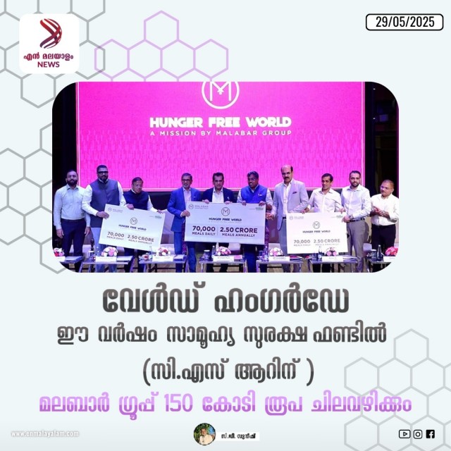 ന്യൂഡൽഹി / കോഴിക്കോട്: സിഎസ്ആര് പ്രവര്ത്തനങ്ങള്ക്ക് ഈ വര്ഷം മലബാര് ഗ്രൂപ്പ് 150 കോടി രൂപ ചിലവഴിക്കും. 'വേള്ഡ് ഹംഗര്ഡേ' ആയ മെയ് 28 ന് എല്ലാ വര്ഷവും സി.എസ്.ആര് ദിനമായി ആചരിക്കാന് മലബാര് ഗോള്ഡ് ആന്റ് ഡയമണ്ട്സിനു നേതൃത്വം നല്കുന്ന മലബാര് ഗ്രൂപ്പ് തീരുമാനിച്ചിരുന്നു. ഡല്ഹി ജന്പഥിലെ ഇന്റര്നാഷണല് സെന്ററില് നടന്ന ഈ വര്ഷത്തെ സിഎസ്ആര് ദിനാചരണ ചടങ്ങ് നീതി ആയോഗ് മുന് സിഇഒയും ജി-20 ഷെര്പ്പയുമായ അമിതാഭ്കാന്ത് ഉദ്ഘാടനം ചെയ്തു. സിഎസ്ആർ ദിനം പ്രമാണിച്ച് രാജ്യമെമ്പാടും മലബാര് ഗോള്ഡ് ആന്റ് ഡയമണ്ട്സ് ഷോറൂമുകളില് വിവിധ പരിപാടികള് സംഘടിപ്പിച്ചു. മലബാർ ഗ്രൂപ്പ് ചെയർമാൻ, എം.പി. അഹമ്മദ് ; വൈസ് ചെയർമാൻ കെ.പി. അബ്ദുള്ള സലാം; ഇന്ത്യ ഓപ്പറേഷൻസ് മേധാവി, ഒ. ആഷർ, ; ഗ്രൂപ്പ് എക്സിക്യൂട്ടീവ് ഡയറക്ടർമാരായ നിഷാദ് എ.കെ.യും, കെ.പി. വീരാൻകുട്ടിയും; ഗ്രൂപ്പ് ഡയറക്ടർ പി.എ. അബ്ദുള്ള ഇബ്രാഹിം; തണൽ, ദയ റിഹാബിലിറ്റേഷൻ, ചെയർമാൻ, ഡോ. ഇദ്രീസ് വി; നോർത്ത് സോണൽ ഹെഡ് ജിഷാദ് എൻ.കെ; മറ്റ് മാനേജ്മെൻറ് ഉദ്യോഗസ്ഥരും പങ്കെടുത്തു.
