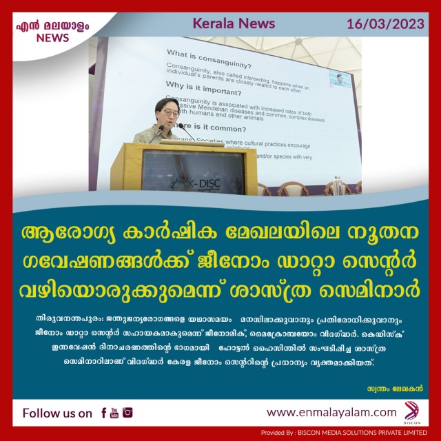 ആരോഗ്യ- കാര്ഷിക മേഖലയിലെ നൂതന ഗവേഷണങ്ങള്ക്ക് ജീനോം ഡാറ്റാ സെന്റര് വഴിയൊരുക്കുമെന്ന് ശാസ്ത്ര സെമിനാര്