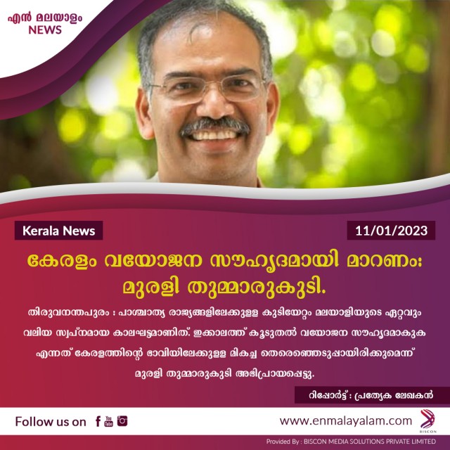 കേരളം വയോജന സൗഹൃദമായി മാറണം : മുരളി തുമ്മാരുകുടി.