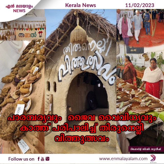 കാട്ടിക്കുളം (വയനാട്): വരുന്ന തലമുറക്ക് പോലും മാതൃകയായി ,പാരമ്പര്യവും ജൈവ ബെവിധ്യവും ചേർത്ത് പിടിച്ച് തിരുനെല്ലി വിത്തുത്സവം ശ്രദ്ധേയമായി. വിത്തുകൾ ,കിഴങ്ങ് വർഗ്ഗങ്ങൾ ,നെല്ലിനങ്ങൾ ,ജൈവ വൈവിധ്യ സ്റ്റാളുകൾ ,വിവിധ തരം വാഴകൾ , പാരമ്പര്യ കര കൗശല വസ്തുക്കൾ .കർഷക സംവാദങ്ങൾ ,സംസ്കാരീ ക പ രിപാടികൾ കൊണ്ടെല്ലാം സർഗ്ഗാത്മകമായിരുന്നു വിത്തുത്സവം. മണ്ണും ഭക്ഷണവും ,ജൈവ വൈവിധ്യവും ,ആരോഗ്യവും ,പരിസ്ഥിതിയും വിഷയമായി കാലത്തിൻ്റെ ആവശ്യമായ ഇടം ഒരുക്കിയ വിത്തുത്സവം വയനാടിൻ്റെ സവിശേഷമായ ഗോത്ര പൈതൃകം അടയാളപ്പെടുത്തി. തിരുനെല്ലി ഗ്രാമപഞ്ചായത്ത്, നബാർഡ്,കൃഷി വകുപ്പ് ,ജൈവ വൈവിധ്യ ബോർഡ് ,കുടുംബശ്രീ, ബ്രമ്മ ഗിരി ഡവലപ്മെൻ്റ് സൊസൈറ്റി, തിരുനെല്ലി കർഷക ഉദ്പാദക കമ്പനി, കീസ്റ്റോൺ ഫൗണ്ടേഷൻ, തണൽ അഗ്രോ ഇക്കോളജി സെൻ്റർ ,ഹ്യൂoസ് സെൻ്റർ ഫോർ ഇക്കോളജി ആൻറ് വൈൽഡ് ലൈഫ് ബയോളജി ,സ്പന്ദനം മാനന്തവാടി ,എൻ .ആർ .എൽ .എം .തിരുനെല്ലി, കേരള മഹിളാ സമഖ്യ സൊസൈറ്റി ,കേരള ബാങ്ക് ,കേരള ഗ്രാമീൺ ബാങ്ക് ,തിരുനെല്ലി സർവ്വീസ് സഹകരണ ബാങ്ക് ,ഗവ: കോളേജ് മാനന്തവാടി ,പി.കെ. കാളൻ മെമ്മോറിയൽ കോളേജ് ,മേരി മാതാ ആർട്ട്സ് ആൻറ് ആൻ്റ് സയൻസ് കോളേജ് , ഗുരുകുലം കോളേജ് ദ്വാരക, വൊക്കേഷണൽ ഹയർ സെക്കണ്ടറി സ്കൂൾ മാനന്തവാടി ഗവ: ഹയർ സെക്കണ്ടറി സ്കൂൾ തൃശിലേരി , ഗവ: ഹയർ സെക്കണ്ടറി സ്കൂൾ കാട്ടിക്കുളം ,താലൂക്ക് ലൈബ്രറി കൗൺസിൽ എന്നീ സംഘടനകളുടെ സഹകരണ ത്രിദിന വിത്തുത്സവം നടന്നത്. വിത്തെന്നാൽ അന്നമാണ് നന്മയാണ് നമ്മുടെ ആരോഗ്യമാണ് ,നമ്മുടെ സുസ്ഥിരമായ അതിജീവന മാണ് എന്നാണ് ത്രിദിന വിത്തുത്സവം നൽകുന്ന സന്ദേശം .