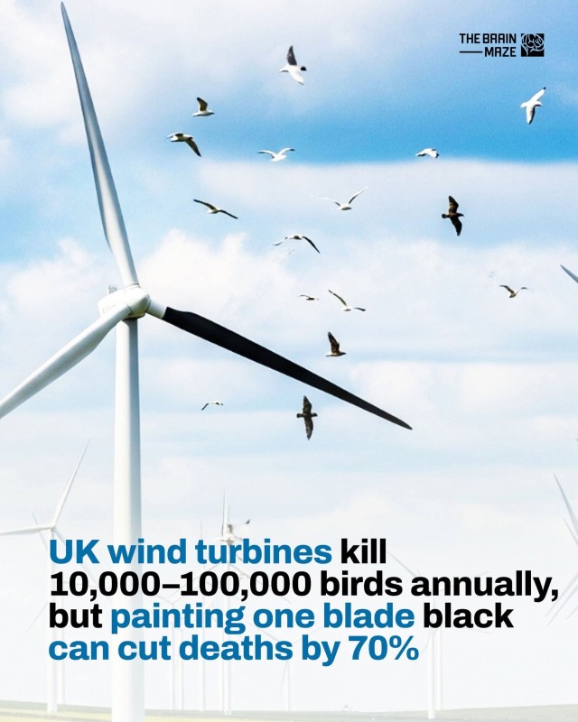 പരിസ്ഥിതി ശാസ്ത്രത്തിലും പരിണാമത്തിലും നടത്തിയ ഒരു പഠനത്തിൽ കാറ്റാടി യന്ത്ര രൂപകൽപ്പനയിലെ ഒരു ലളിതമായ മാറ്റം പക്ഷികളുടെ മരണനിരക്ക് ഗണ്യമായി കുറയ്ക്കുമെന്ന് കണ്ടെത്തി. നോർവേയിലെ സ്മോല കാറ്റാടിപ്പാടത്തിൽ, ഒരു ടർബൈനിന്റെ മൂന്ന് ബ്ലേഡുകളിൽ ഒന്ന് മാത്രം കറുത്ത നിറത്തിൽ വരയ്ക്കുന്നത് പക്ഷികളുടെ മരണനിരക്ക് 70% കുറയ്ക്കാൻ കാരണമായതായി ഗവേഷകർ കണ്ടെത്തി, റാപ്റ്ററുകളിൽ ഏറ്റവും വലിയ നേട്ടം കാണപ്പെടുന്നു. പക്ഷികൾക്ക് കറങ്ങുന്ന ബ്ലേഡുകൾ കണ്ടെത്തുന്നത് ബുദ്ധിമുട്ടാക്കുന്ന "മോഷൻ സ്മിയർ" ഇഫക്റ്റിനെ വർണ്ണ വ്യത്യാസം തകർക്കുന്നതായി തോന്നുന്നു. റിട്രോഫിറ്റ് വെല്ലുവിളി നിറഞ്ഞതാണെങ്കിലും - ബ്ലേഡുകൾ സ്ഥാനത്ത് പെയിന്റ് ചെയ്യേണ്ടത് ആവശ്യമാണ് - നിർമ്മാണ സമയത്ത് ഈ സമീപനം പ്രയോഗിക്കുന്നത് ചെലവ് ഗണ്യമായി കുറയ്ക്കുമെന്ന് സംഘം അഭിപ്രായപ്പെട്ടു. താരതമ്യേന കുറഞ്ഞ ചെലവിൽ, ദൃശ്യ പരിഷ്ക്കരണം വന്യജീവികൾക്ക് കാറ്റാടി ഊർജ്ജം സുരക്ഷിതമാക്കുന്നതിനുള്ള ശക്തമായ ഒരു ഉപകരണമാകുമെന്ന് കണ്ടെത്തലുകൾ സൂചിപ്പിക്കുന്നു.