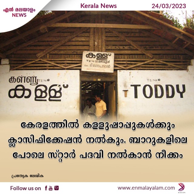 കേരളത്തിൽ കള്ളുഷാപ്പുകൾക്കും ക്ലാസിഫിക്കേഷൻ നൽകും.ബാറുകളിലെ പോലെ സ്റ്റാര് പദവി നല്കാന് നീക്കം