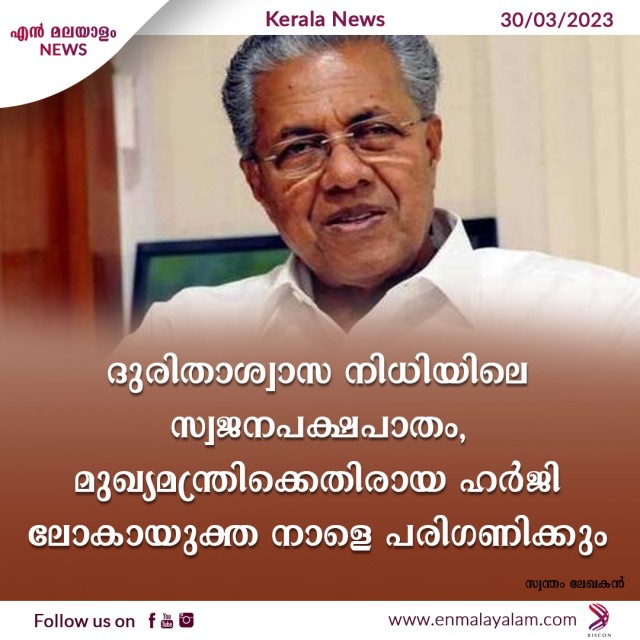 ദുരിതാശ്വാസ നിധിയിലെ സ്വജനപക്ഷപാതം ,മുഖ്യമന്ത്രിക്കെതിരായ ഹർജി ലോകായുക്ത നാളെ പരിഗണിക്കും