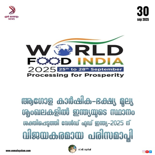 *ആഗോള കാർഷിക-ഭക്ഷ്യ മൂല്യ ശൃംഖലകളിൽ ഇന്ത്യയുടെ സ്ഥാനം ശക്തിപ്പെടുത്തി വേൾഡ് ഫുഡ് ഇന്ത്യ-2025 ന് വിജയകരമായ പരിസമാപ്തി*