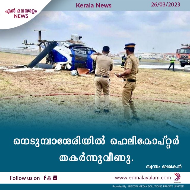 നെടുമ്പാശേരിയില് ഹെലികോപ്റ്റര് തകര്ന്നുവീണു.