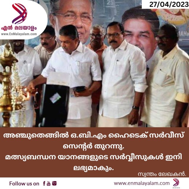 അഞ്ചുതെങ്ങിൽ ഒ.ബി.എം ഹൈടെക് സർവീസ് സെന്റർ തുറന്നു. മത്സ്യബന്ധന യാനങ്ങളുടെ സർവ്വീസുകൾ ഇനി ലഭ്യമാകും.