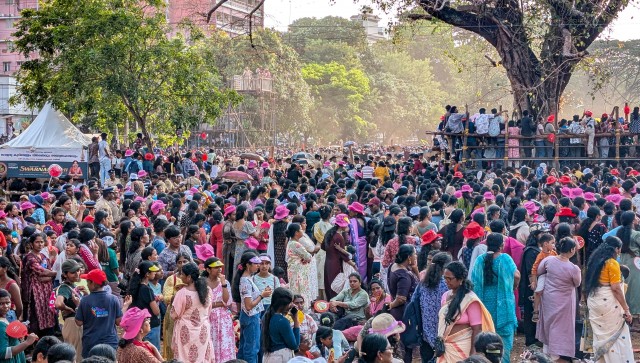 പൂരപ്രേമികളായ സ്ത്രീകൾക്കും കുട്ടികൾക്കും കുടമാറ്റം ആസ്വദിക്കാൻ പ്രത്യേക ഇടം ഒരുങ്ങി, സ്ത്രീകൾ പൂരം നിറഞ്ഞാസ്വദിച്ചു.