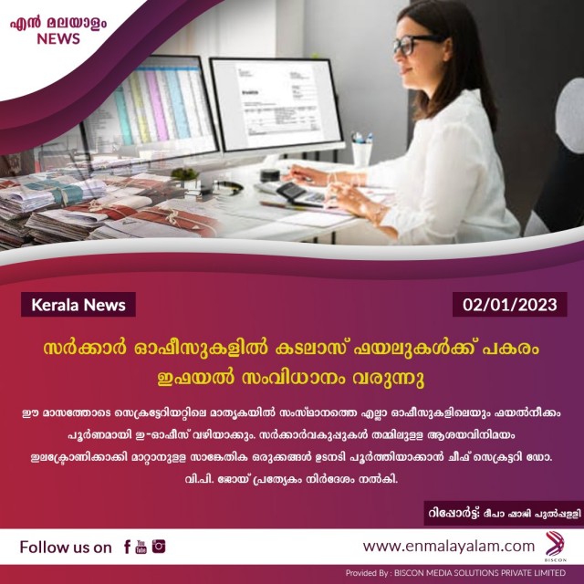 സർക്കാർ ഓഫീസുകളിൽ കടലാസ് ഫയലുകൾ ക്ക് പകരം ഇ-ഫയൽ സംവിധാനം വരുന്നു.