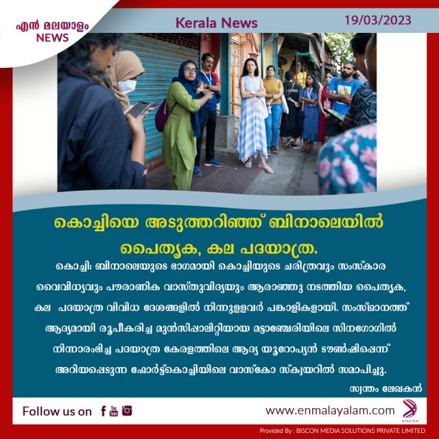 കൊച്ചിയെ അടുത്തറിഞ്ഞ് ബിനാലെയിൽ പൈതൃക, കല പദയാത്ര.